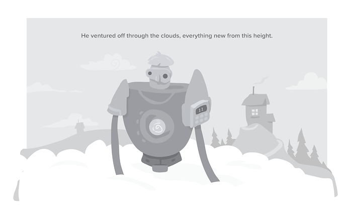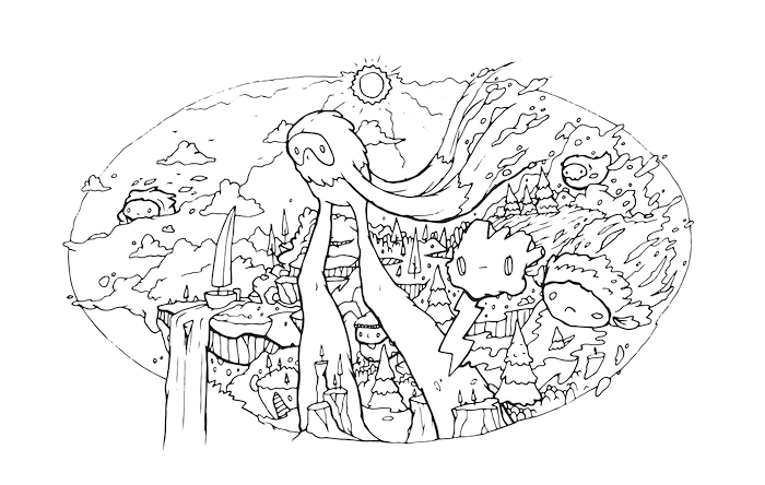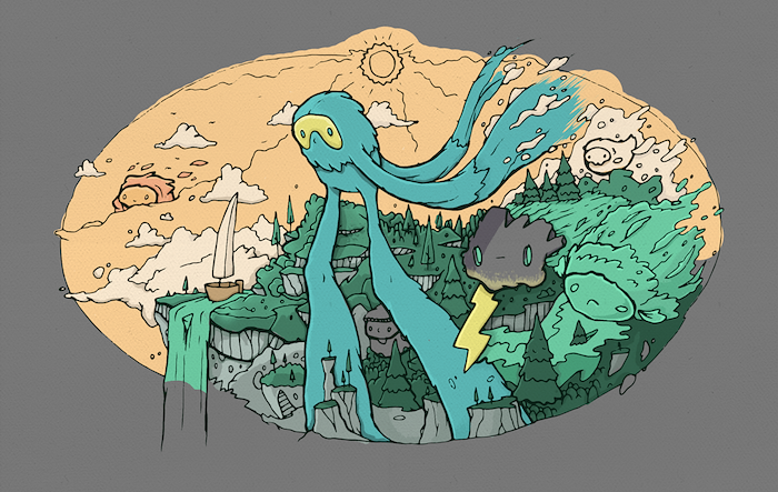 Quick storyboards for a digital children's illustration book called "The Giant Mess" that was discontinued before development.