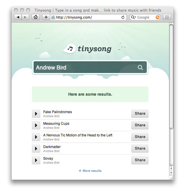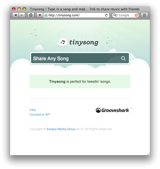 Tinysong, a simple music sharing site, was the first web project I ever worked on at Grooveshark (2008).