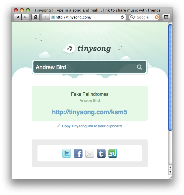 “Grooveshark has revamped Tinysong and made it even easier to share single songs. I think TechCrunch’s Robin Wauters describes it well: "Simple, useful, and nicely designed. What’s not to love?” – Styleboost.com