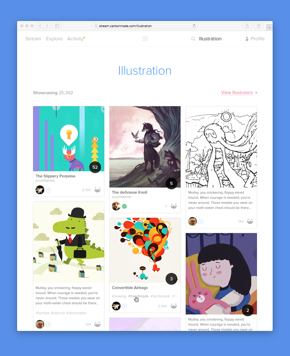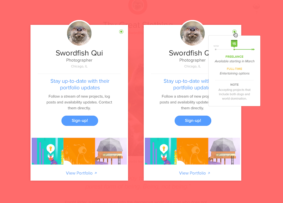 Each portfolio was an island. Most people don’t have the resources or time to leverage a large network or let alone keep a smaller one up-to-date as things are added or availability to take on new work changes. The Carbonmade ecosystem, as it stood, was disconnected and lacked a base for promotion to entice scouts (people looking to hire) to come and find prospective clients.