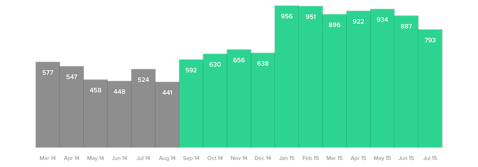 We began a slow rollout of the Carbonmade interface to unpaid subscribers in September. We saw a steady increase of new subscribers that has continued to increase while subscribers leaving has stayed steady and even decreased.